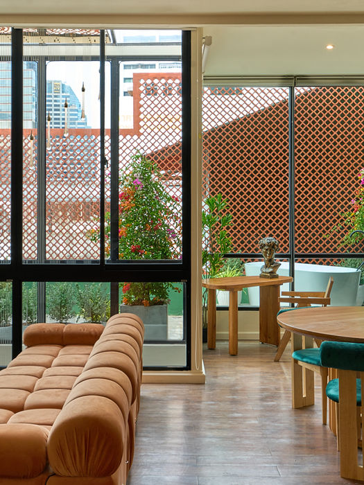 This is 5loft’s crown — three-bedroom tropical oasis where the elevator opens directly into your room. Surrounded by plants and rich textures, it’s a space made for celebration, deep rest, and bold living. Inside, you'll find two bedrooms, three bathrooms, a full kitchen, and a spacious living and dining area. There’s even an office that transforms into a third sleeping space — perfect for groups, creative retreats, or families.